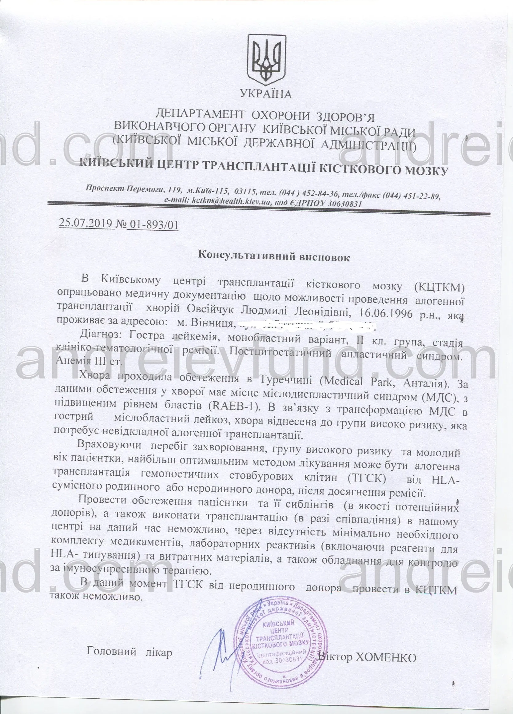 Наш Фонд допомагає зібрати кошти на лікування. Зараз терміново потрібно запустити пошук донора. Адже цей процес може тривати декілька місяців.
